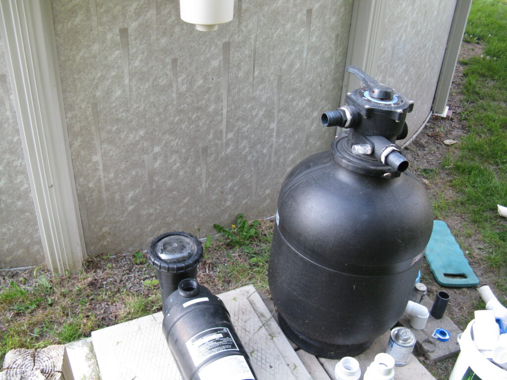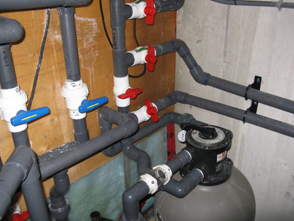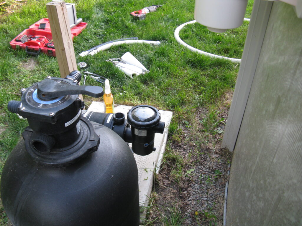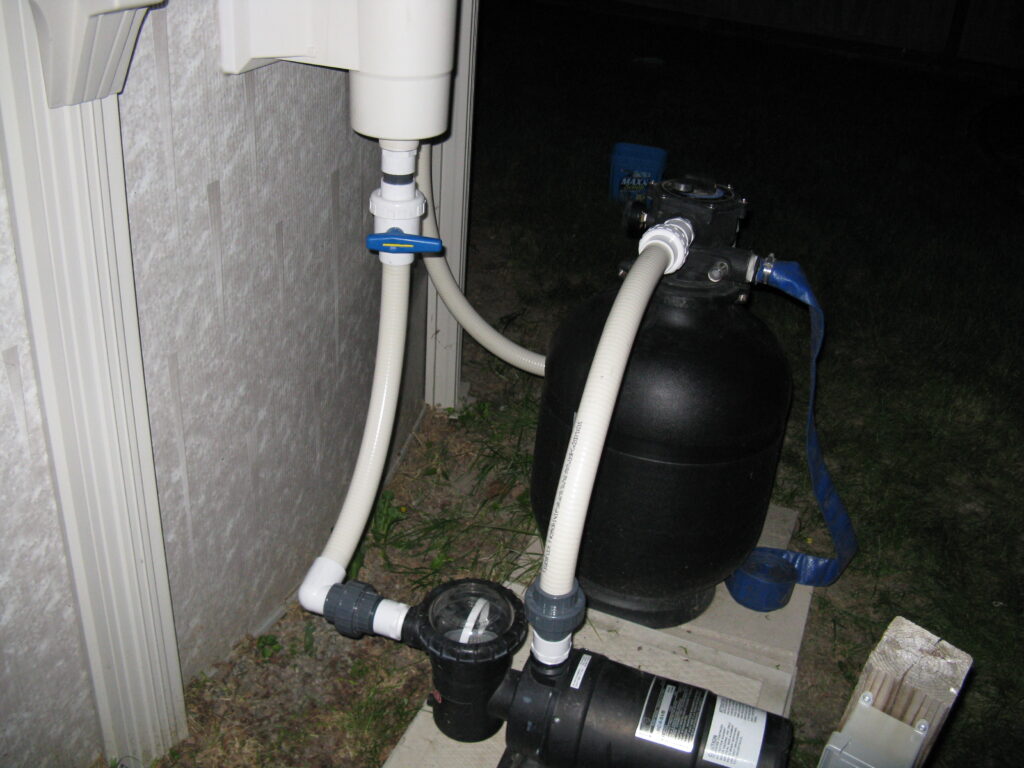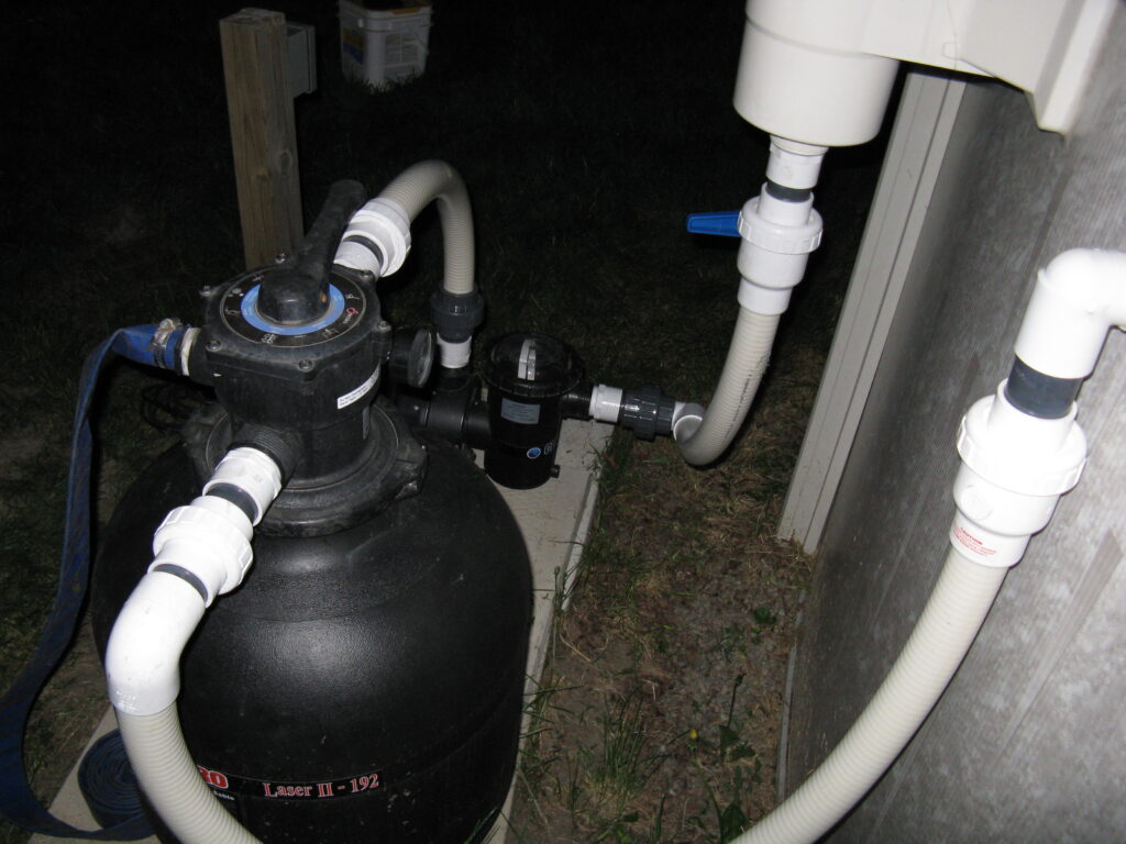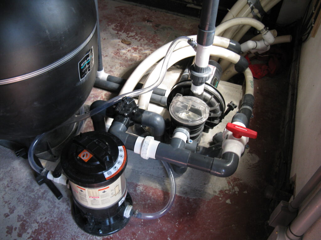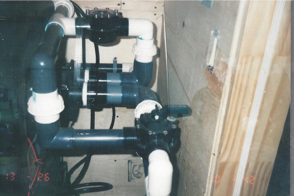 The other example is something customers or even the other companies would not think of. This pool deck was slab jacked to level out the concrete. After the deck is core drilled, liquid concrete is used to float the concrete level. The problem is that the liquid concrete used around a pool can cause major damage to the underground plumbing and equipment. It will find every open crevice and will fill with the material. This picture shows the concrete was pressurized and cracked the fitting along with the pipe going to the swimming pool skimmer.