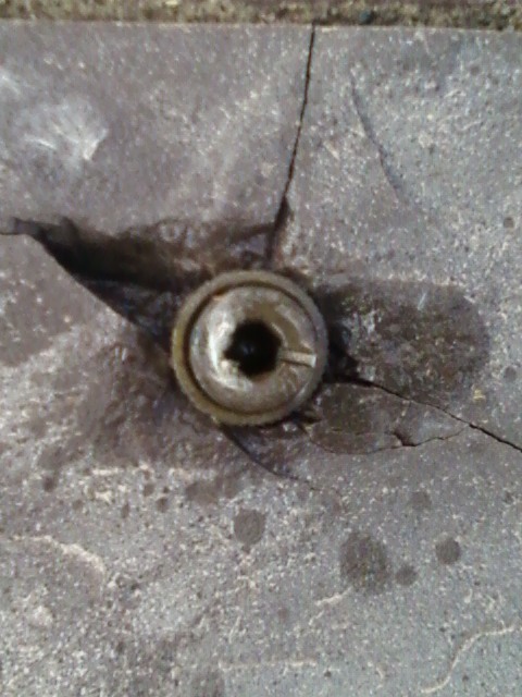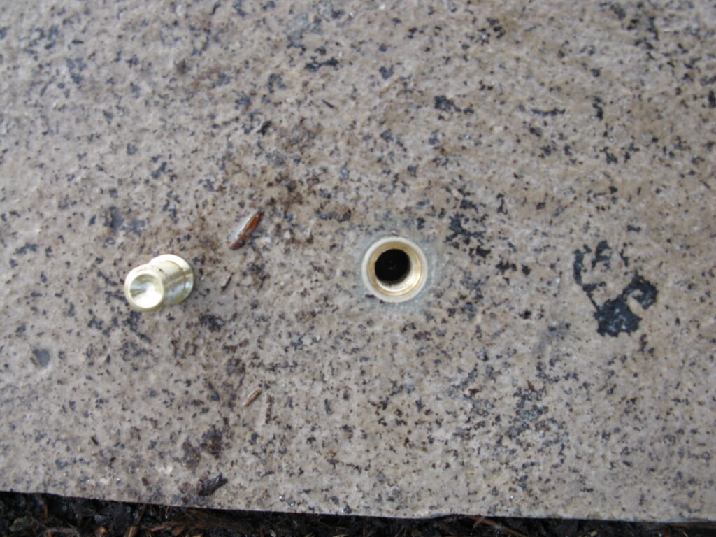 The first two photos show a company that did not have the proper equipment for core drilling stone correctly resulting in the damage that you see. The next six photos are anchors Watertown installed in a customer’s flagstone deck. As you see our core drilling process leaves a perfect hole with no damage what so ever. Having the correct equipment and experience is more costly but the difference we feel is well worth it.