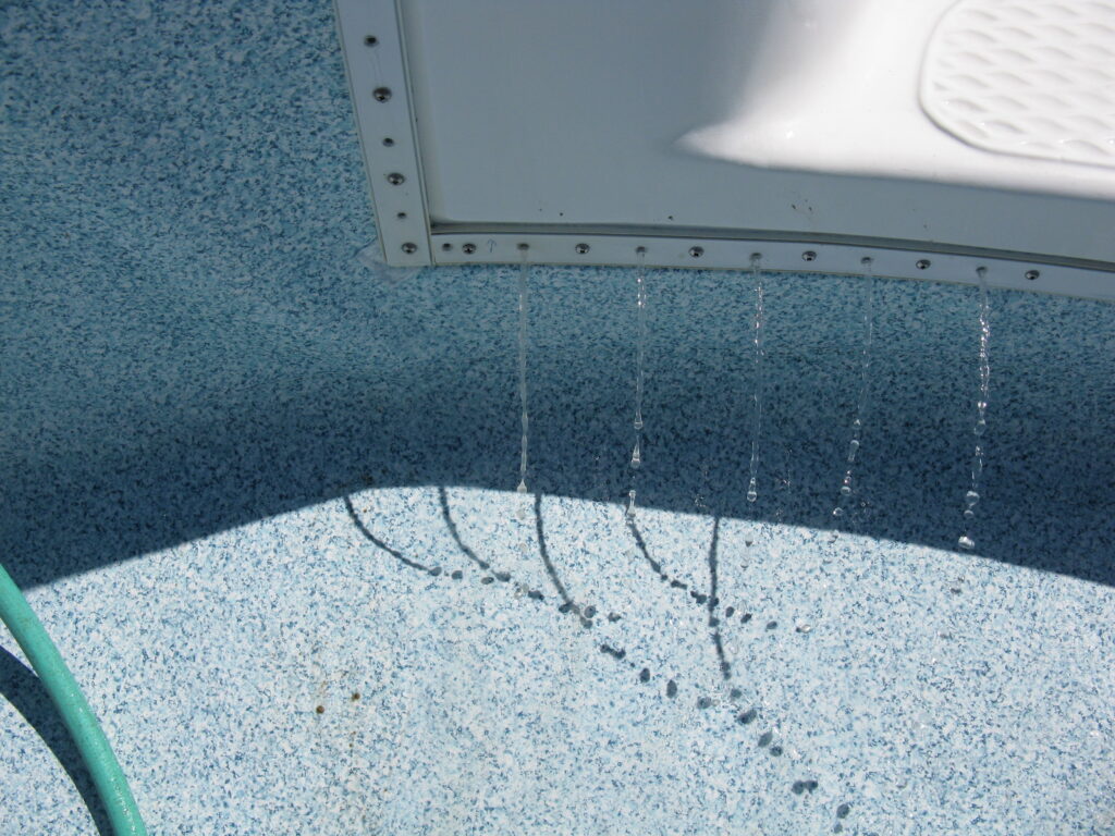 - Top of liner, coping and trim cleaned with soap
