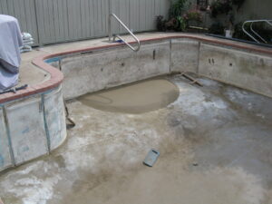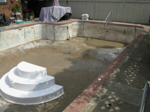 This specific concrete pool was a full depth concrete bottom and fibreglass walls that was losing a lot of water in 1997.